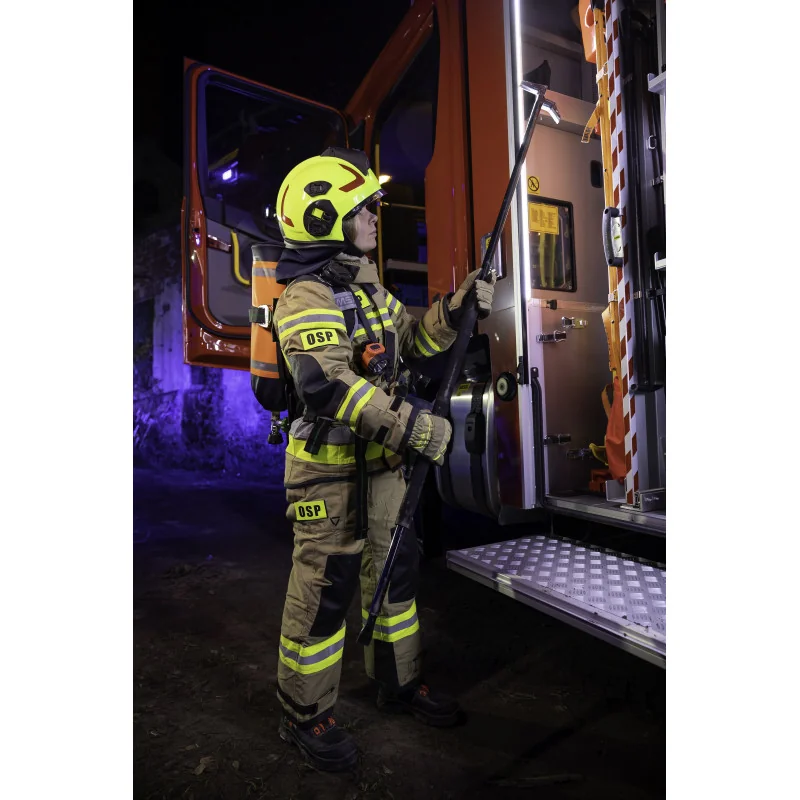 Oryginalny bosak strażacki NY ROOF HOOK Fire Hooks Unlimited wyposażony w uniwersalną głowicę, dłuto i rękojeść Celtex pełni wiele funkcji na miejscu akcji (podważanie, otwieranie włazów dachowych i drzwi).