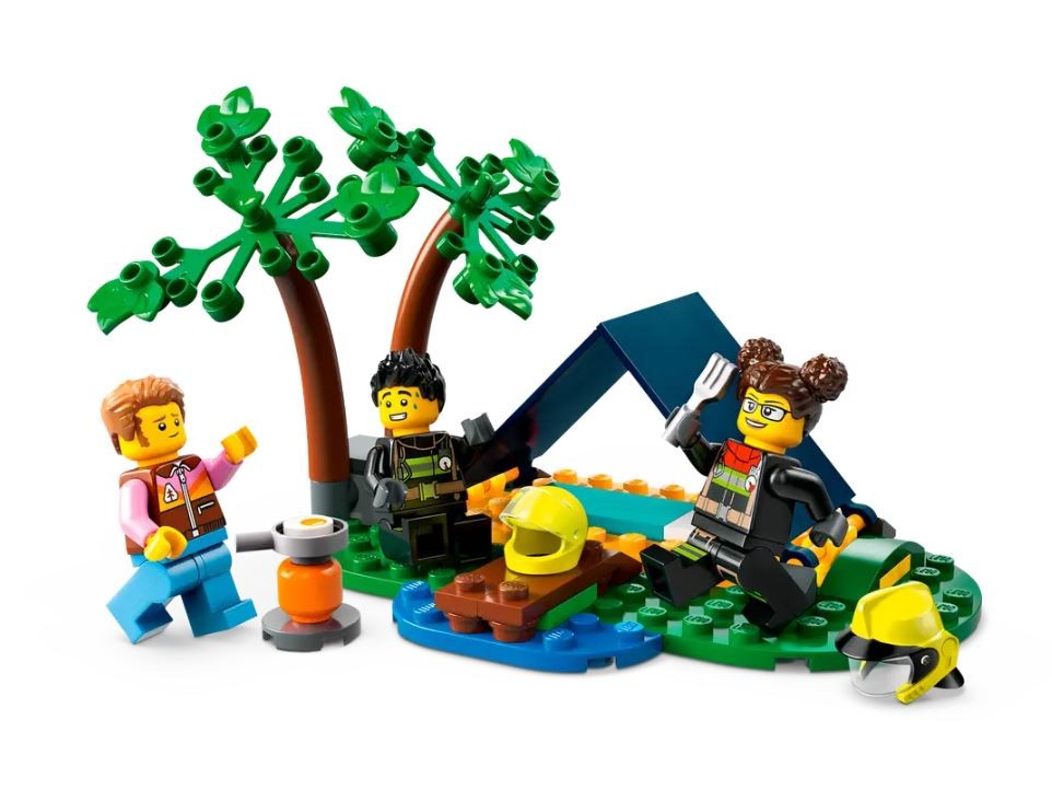 - Zawartość zestawu - w zestawie jest wszystko, czego dzieci potrzebują do zbudowania terenowego wozu strażackiego, przyczepy, łodzi ratunkowej, namiotu i scenki biwakowej z ogniskiem, a także minifigurki biwakowicza i dwóch strażaków