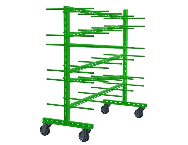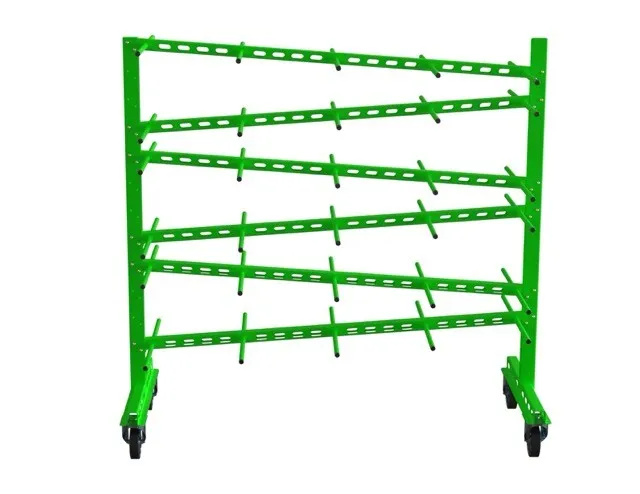 Suszarka do węży pożarniczych to stalowa konstrukcja na kółkach.