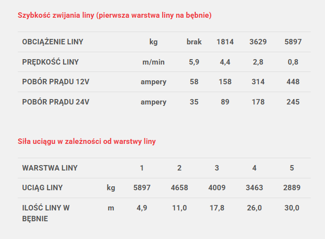 | Waga zestawu brutto z liną 20 m / 30 m | 38,5 kg x 42 kg |