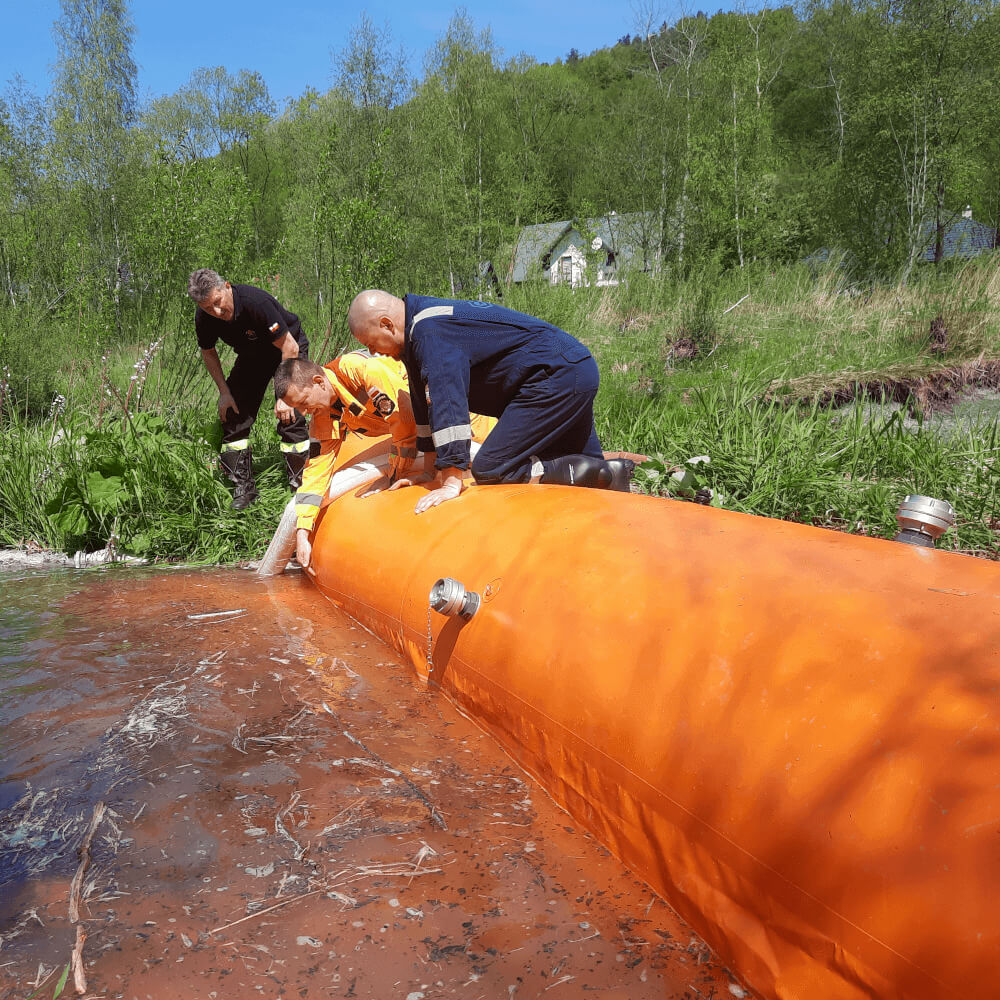 - rękaw do łączenia zapór w wały przeciwpowodziowe.